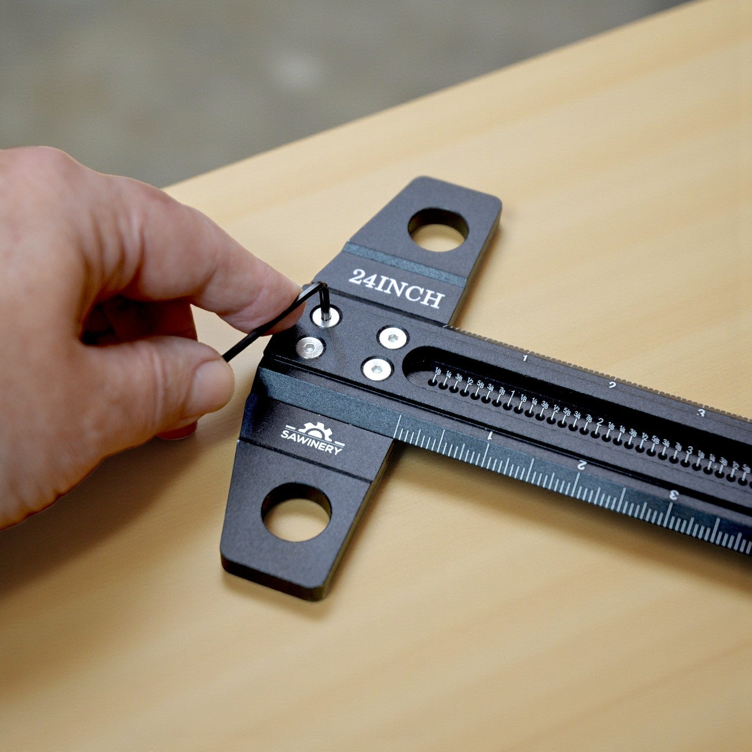 Our 24” T-square solves that problem; providing you with a way of measuring and marking accurately, half way across a sheet of plywood. You can easily draw lines parallel to the edge, as well as perpendicular, allowing you to make complex layouts, right on your plywood.