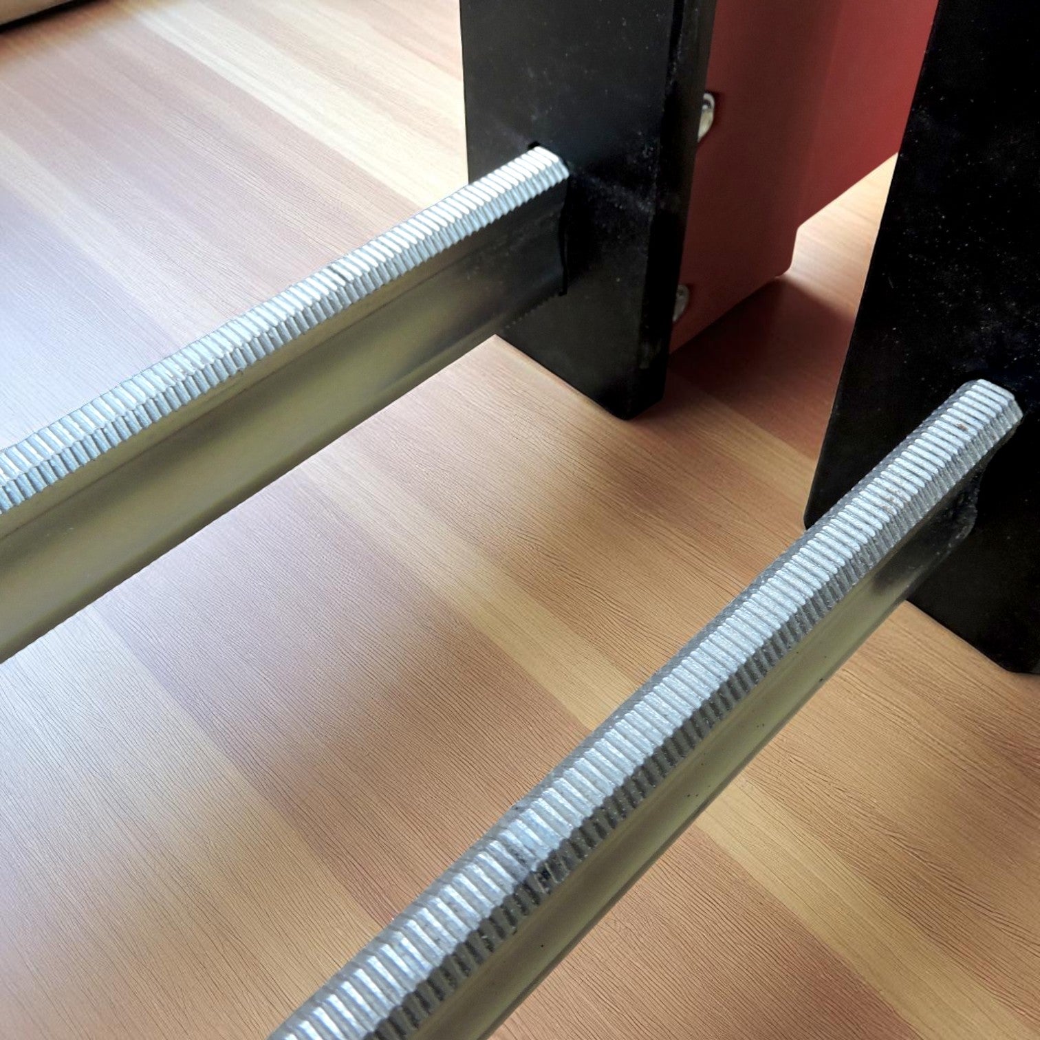 Serrated rails for positive headstock positioning, without the locking mechanism digging into your rails.