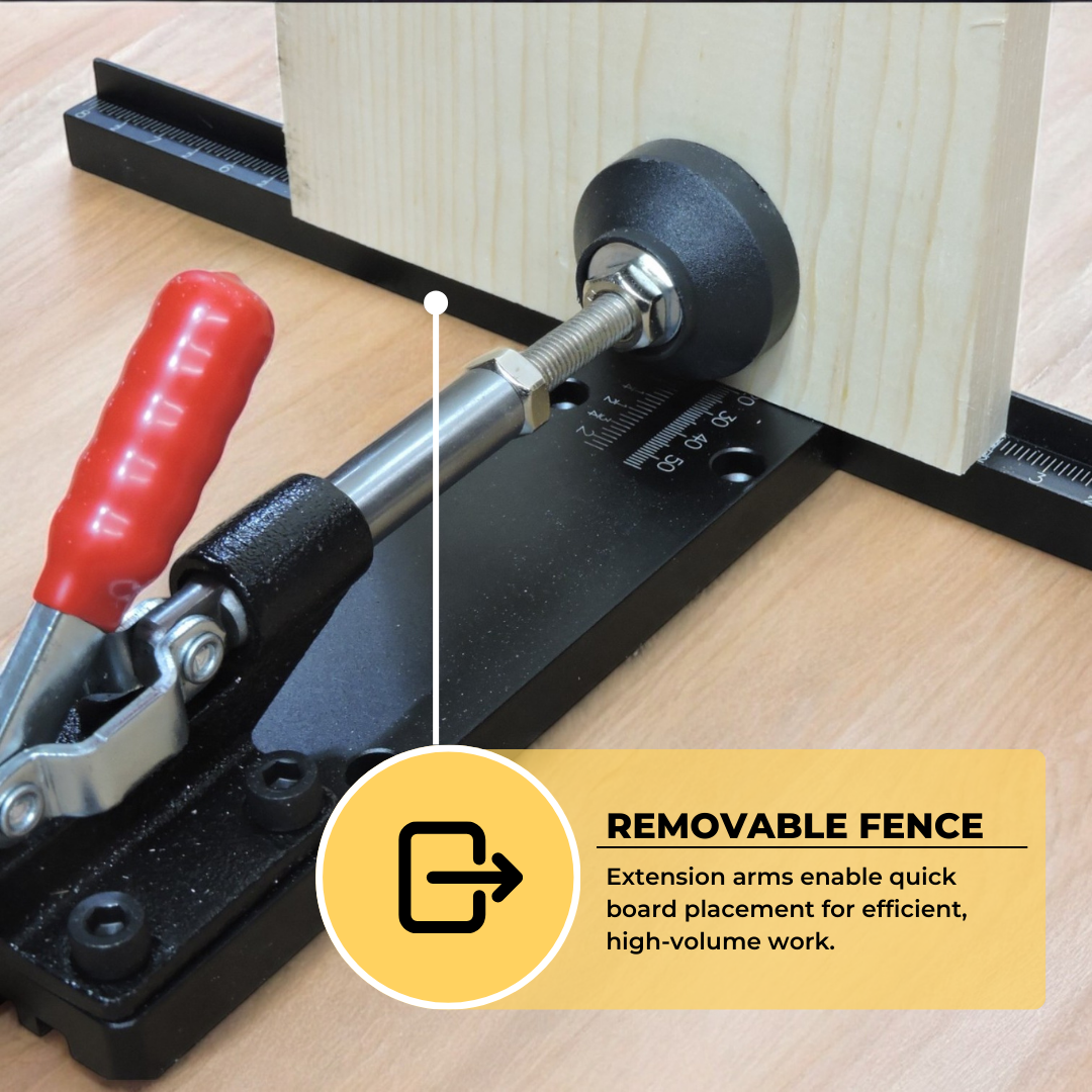 The removable extended fence streamlines production work by allowing rapid placement of boards. Perfect for handling longer or bulkier materials with ease!
