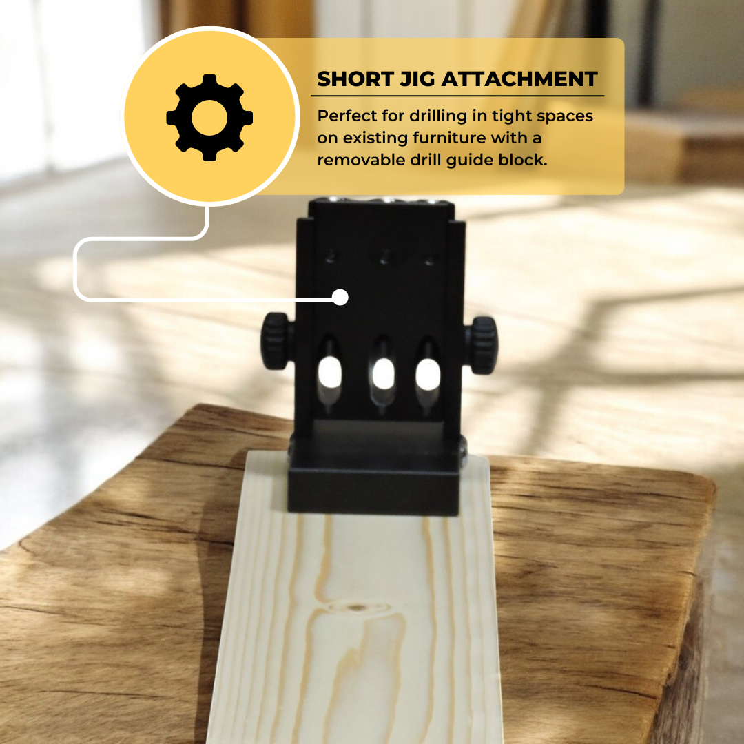 Yes! The jig includes a detachable short drilling block that’s perfect for quick fixes or drilling inside tight cabinet corners.
