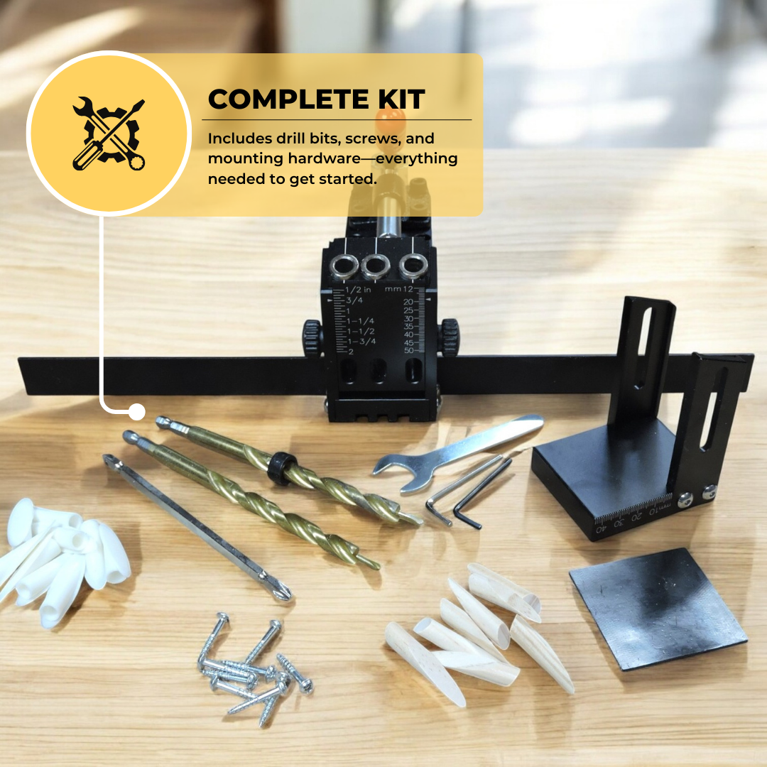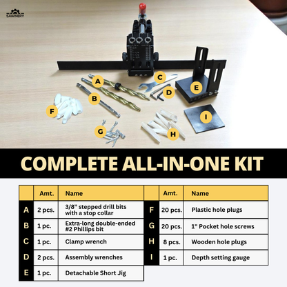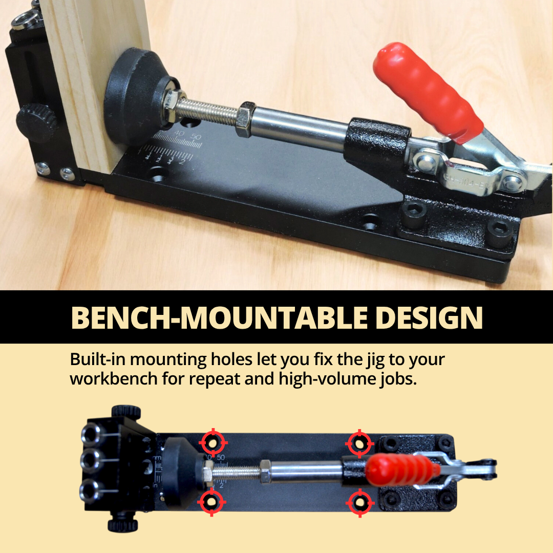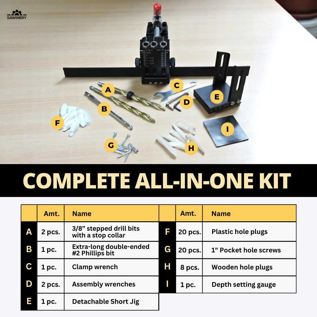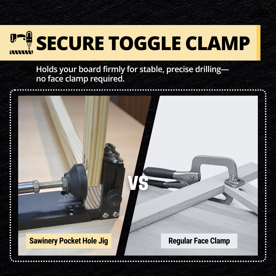 The Sawinery Pocket Hole Jig brings precision, durability, and versatility to pocket hole joinery, designed for both hobbyist and professional use. Ideal for furniture assembly and cabinetry, this heavy-duty jig ensures secure, hidden joints with easy setup and long-lasting performance.