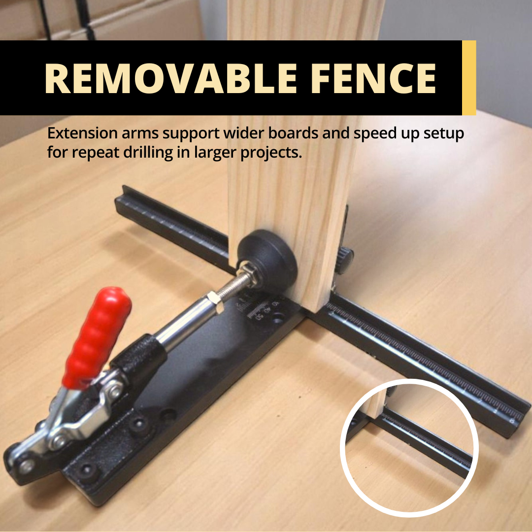 Firmly holds boards for stable, precise drilling on various wood thicknesses.